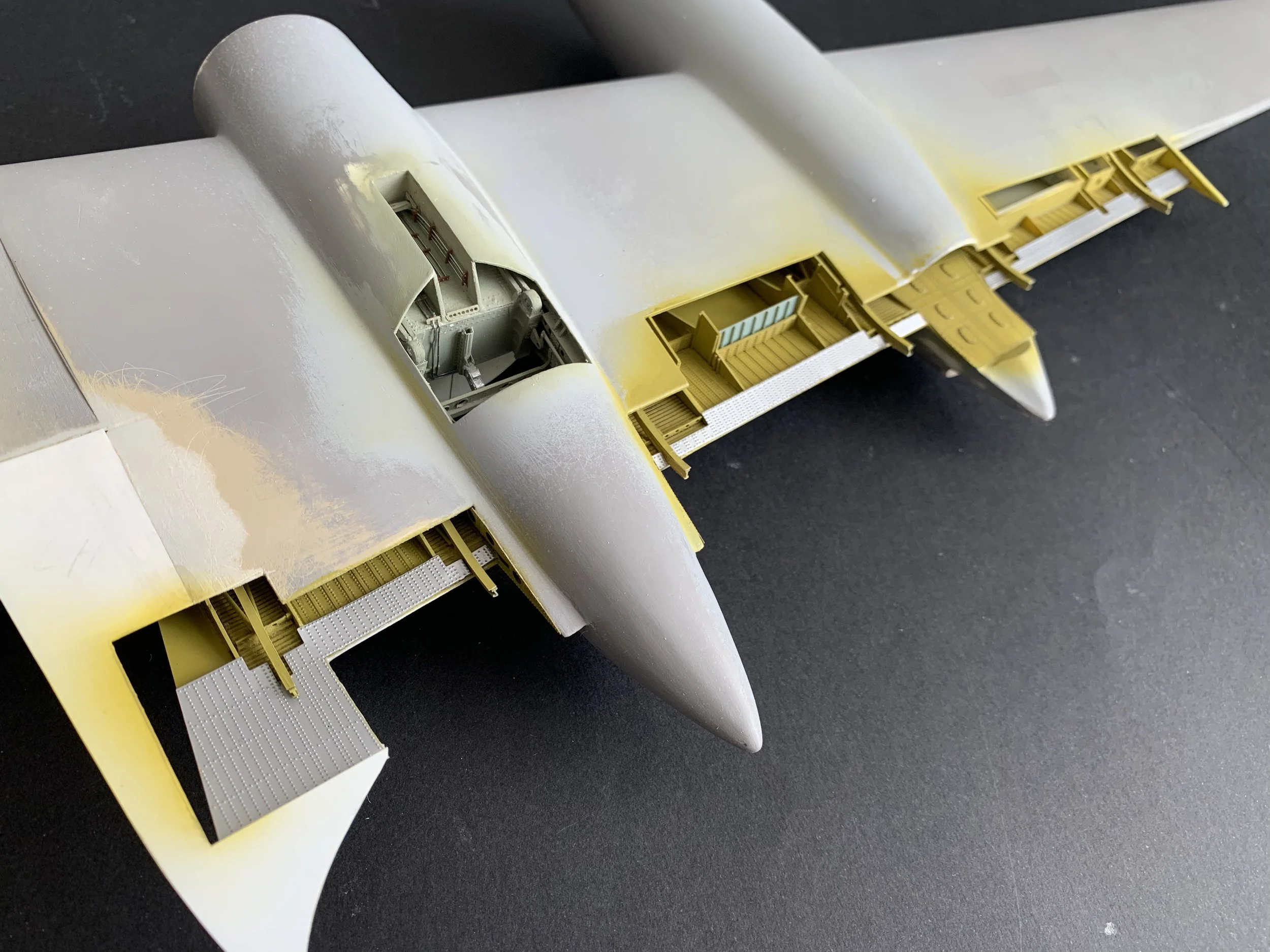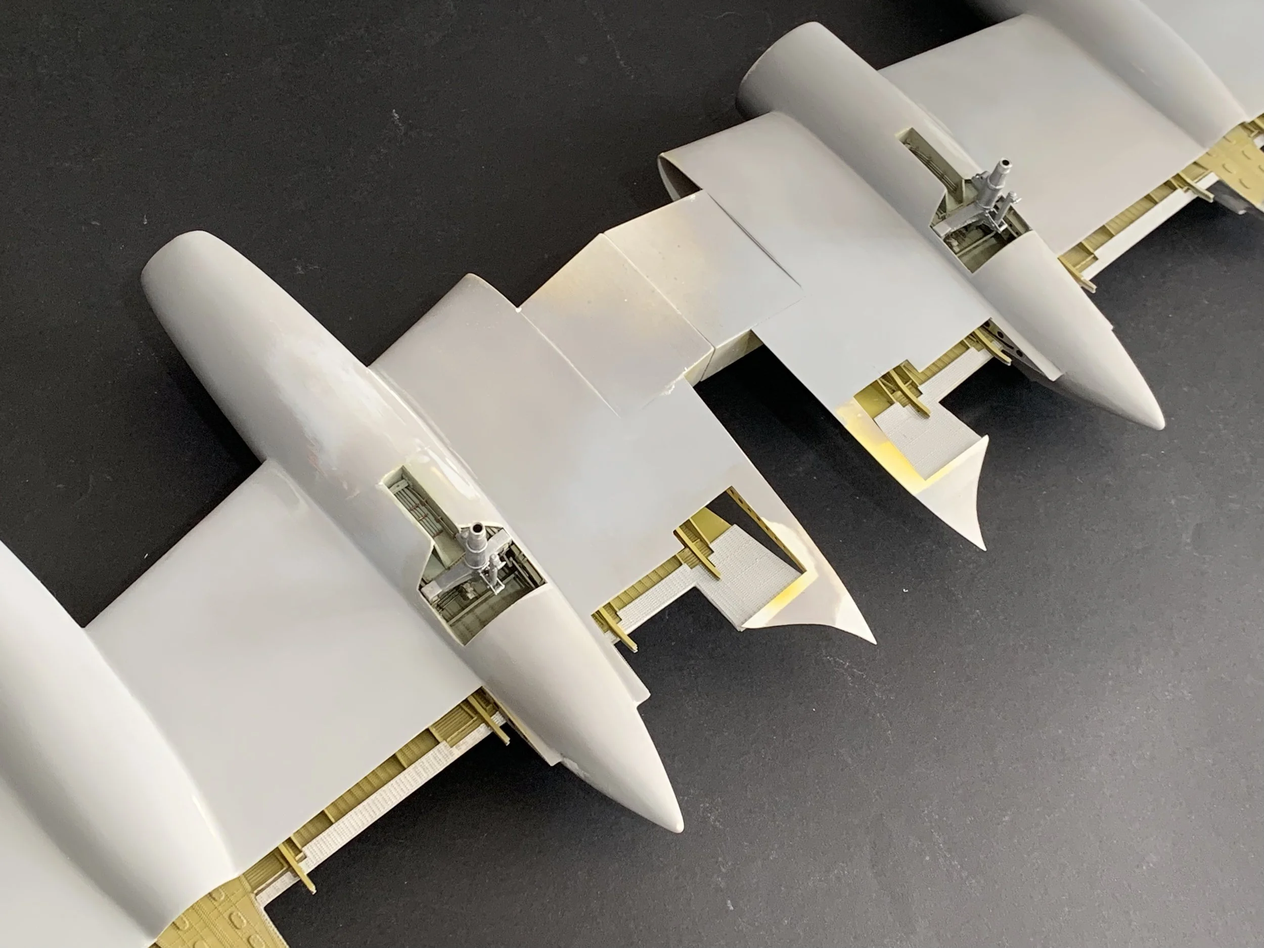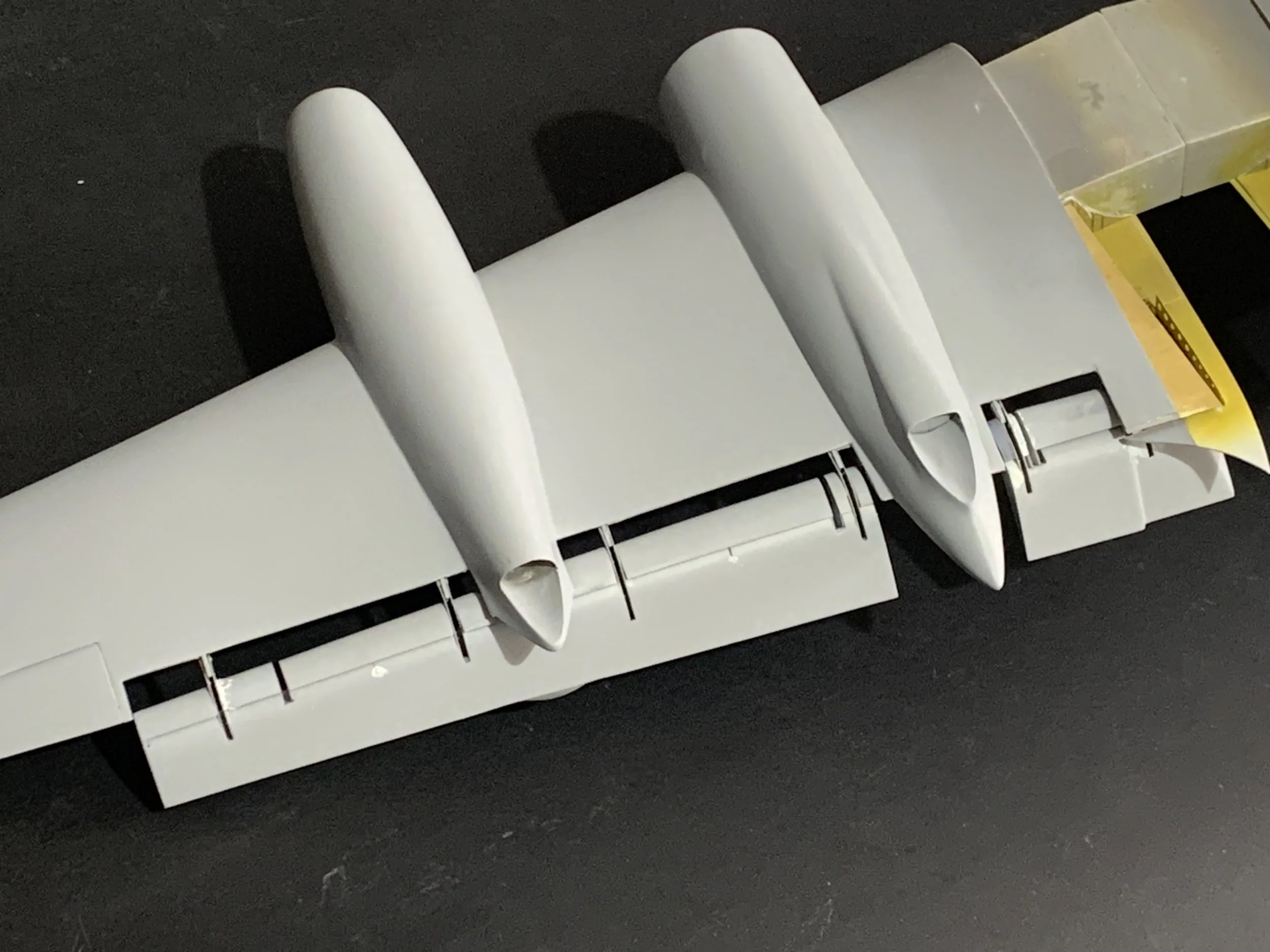 The Bullet Fairings section on the flaps: These were hand-formed using a combination of styrene and Milliput epoxy for a seamless, organic transition.