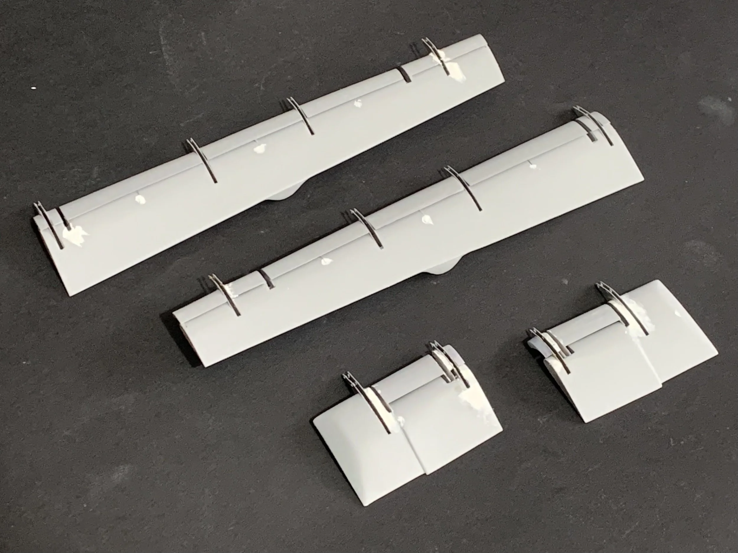 The final stage of the sub-assembly required a bit of "precision surgery." I cut the specific sections for the flap jacks (the flap actuators) and gradually integrated the resin leading-edge slots into their final positions. Seeing the components finally "dock" into the wing tracks was the moment the "conundrum" finally felt like a solved equation.